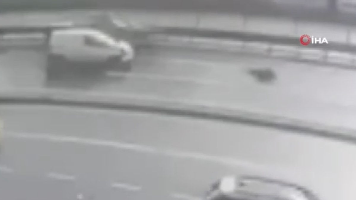 Esenyurt E-5'te yaşanan feci kaza, güvenlik kamerasına da yansıdı. Görüntülerde aracına inmeye çalışan genç doktora, arkadan gelen otomobil hızla çarpıyor. Çarpanın etkisiyle metrelerce savrulan doktor, ağır yaralanıyor.
