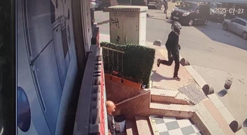 Saldırıyı gerçekleştiren şüphelinin kaçtığı anlar güvenlik kamerasına yansıdı.