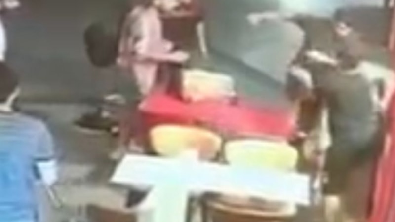 Görüntülerde Bülent B.'nin, masada oturan Taner A.'yı gördükten sonra saldırdığı ve çevredekilerin kavgaya müdahale ettiği anlar yer aldı.