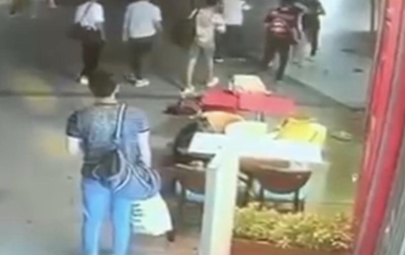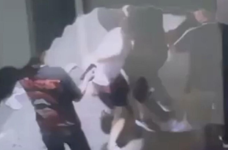 Öte yandan kavga anları, çevredeki bir iş yerinin güvenlik kamerası kayıtlarına yansıdı.