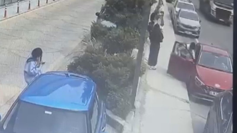 Çevredeki güvenlik kameralarına yansıyan görüntülerde, şüphelinin araca girerek bıçakla tehditte bulunduğu, ardından panikleyip kaçtığı anlar yer aldı.