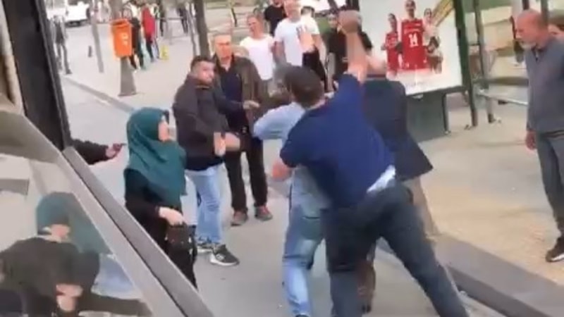 Olay başka yolcuların da dahil olmasıyla birlikte büyürken, taraflar çevredeki vatandaşların ve yolcuların müdahalesiyle sakinleştirildi.