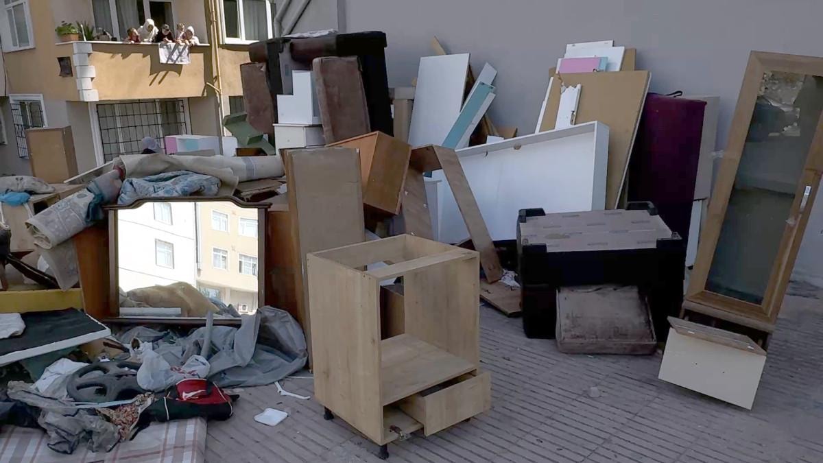 Burada 7 gün boyunca bekleyen eşyalar, bu kez de bina ve mahalle sakinlerinin tepkisine neden oldu.