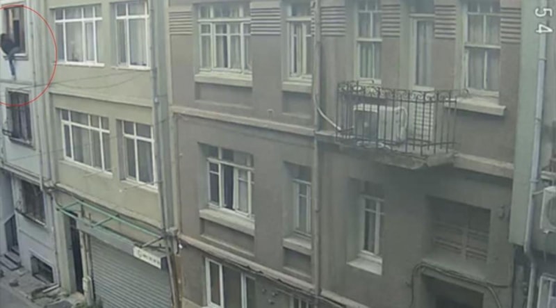 Cihangir’de tırmanarak 3. kattaki daireye giren hırsız, ev sahibi ile karşılaşınca aynı yoldan geri kaçtı. Ev sahibinin hırsızın arkasından bağırmaktan başka bir şey yapamadığı, güvenlik kameralarına yansıdı.