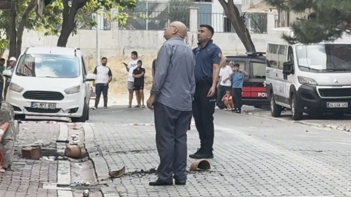 Balkona çıkarak önce bağıran adam, ardından da müdahale etmek isteyen polis ve vatandaşların üzerine saksı attı.