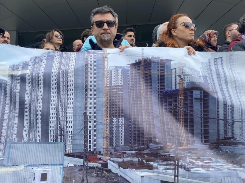 İstanbul Esenyurt'ta bir konut projesinden ev satın alanlar, inşaatın durdurulduğu ve evlerinin teslim edilmediği iddiasıyla proje sahibi şirketin Cevizlibağ'da bulunan binası önünde protesto gösterisi düzenledi.