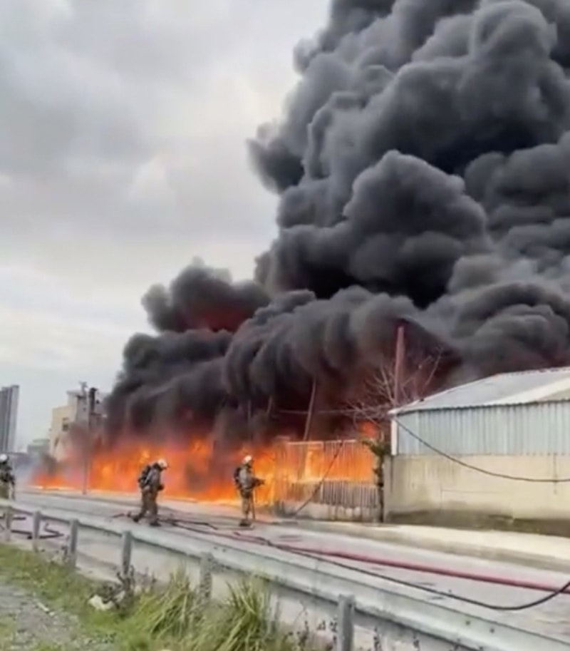 Yangın nedeniyle oluşan yoğun duman çevreye yayıldı.