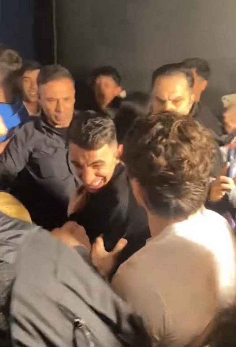 Polis ekipleri ve güvenlikler kalabalığı güçlükle sakinleştirirken, yaşanan o hareketli anlar cep telefonu kamerasıyla görüntülendi.