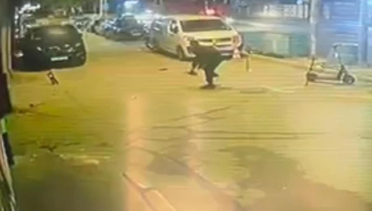 Bişar T.’yi cadde ortasında tekme tokat döven 3 şüpheli, bin 600 lirasını da gasbettikten sonra kaçtı. Olay anı güvenlik kamerasına saniye saniye yansıdı.