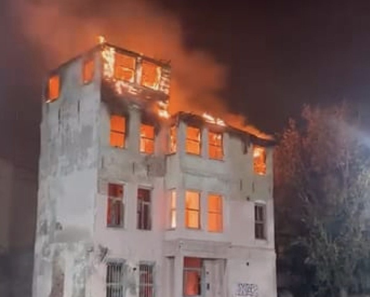 Tarihi binayı saran yangın, itfaiye ekiplerinin uzun süren müdahalesinin ardından söndürüldü.