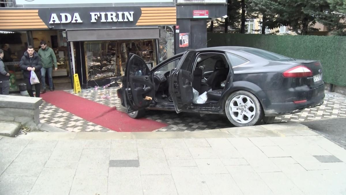 Kontrolden çıkan otomobil fırına daldı. Fırına dalan otomobilin iş yerinin camlarını kırarak reyonları devirdi.