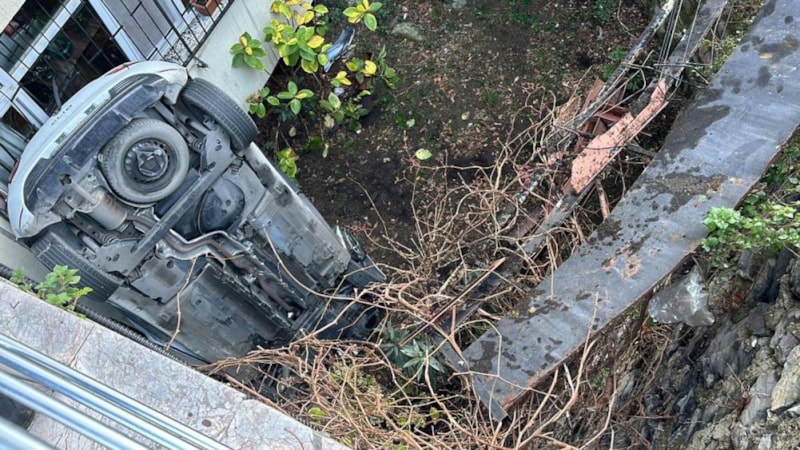Kontrolden çıkan araç, yokuşun sonundaki korkulukları kırdıktan sonra yaklaşık 8 metreden aşağıya uçtu.