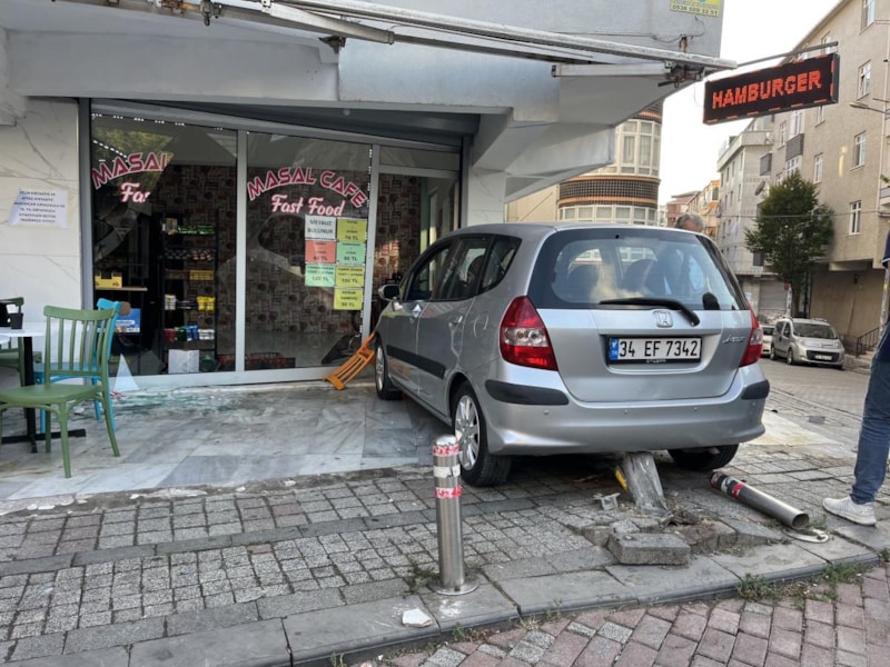 Güngören’de fren yerine gaza basan sürücünün, önce kaldırımda yürüyen kadına ardından aydınlatma direğine ve büfeye çarptığı kazada, yaya yaralandı.