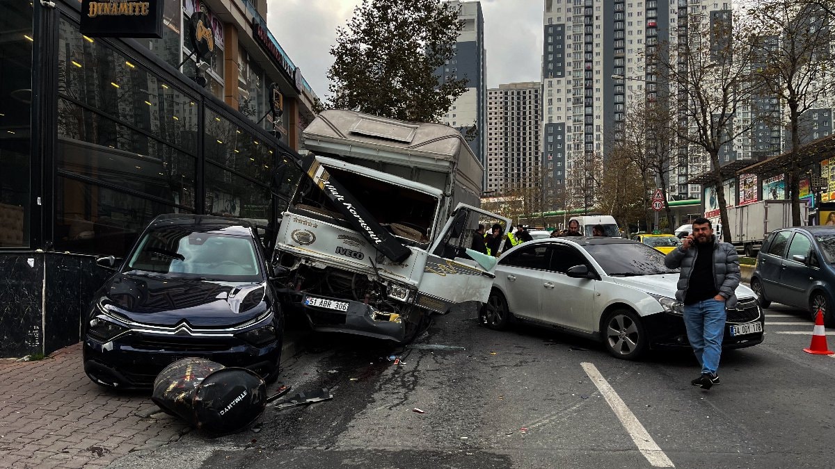 Öte yandan kamyonetin çarptığı araçlardan biri savrularak cadde üzerindeki kafeteryanın camlarını kırdı.