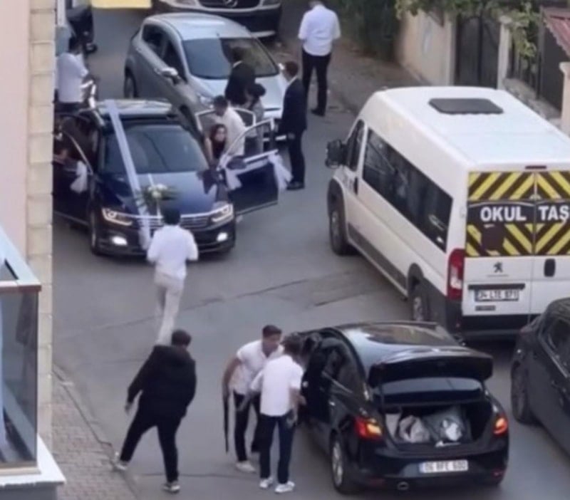 Bir apartman sakini tarafından cep telefonu kamerasıyla kaydedilen görüntülere göre, araçlar gelin alma merasimi için sokağı kapatarak beklemeye başladı.