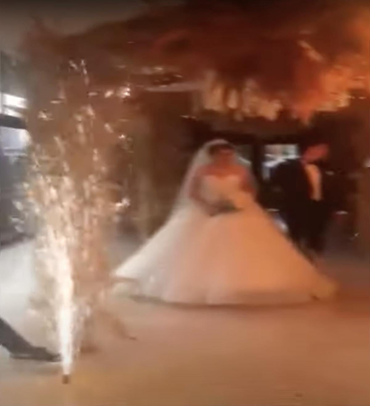 Davetliler panik halinde kaçışırken gelin ve damat da yanmaktan son anda kurtularak korku içinde gelin odasına dönmek zorunda kaldı.