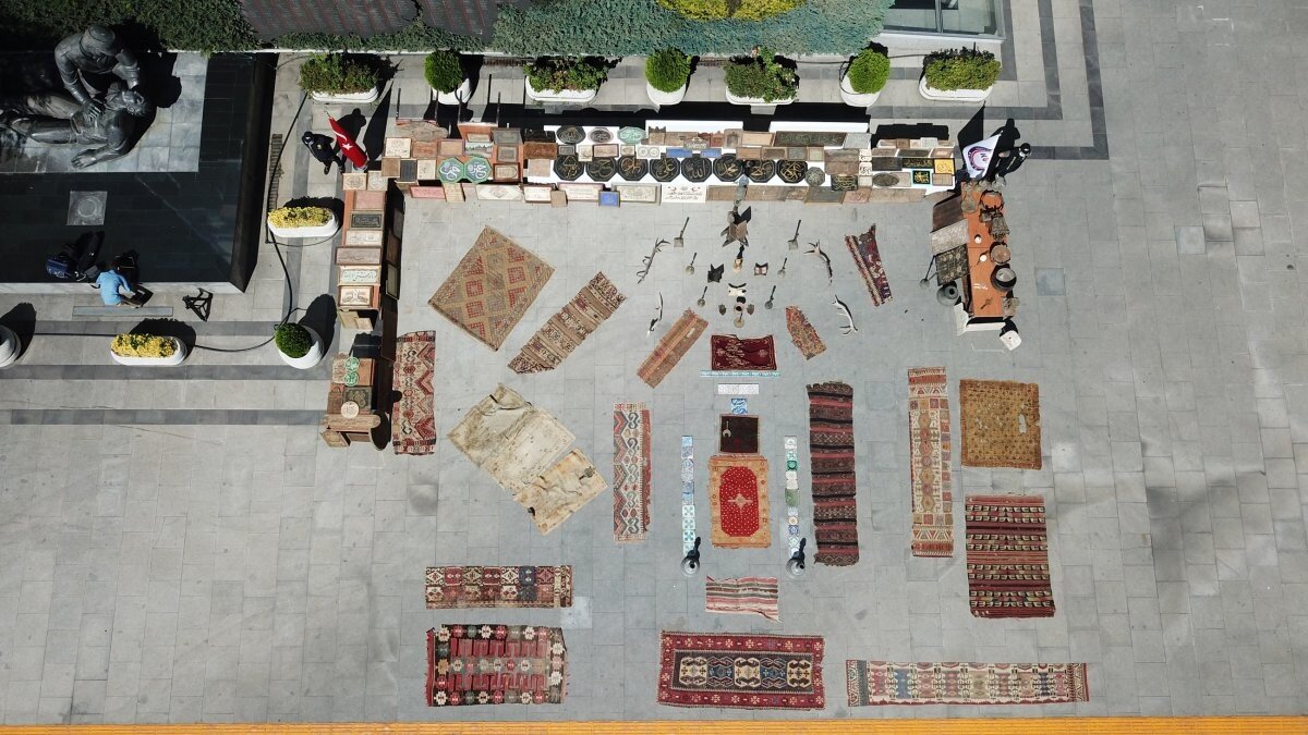 Ele geçirilen tarihi eserlerin Vakıflar 1.Bölge Müdürlüğü'ne teslim edileceği öğrenilirken, eserlerin Vatan Caddesi'ndeki İstanbul Emniyet Müdürlüğü'nün avlusunda sergilendiği anlar havadan görüntülendi.