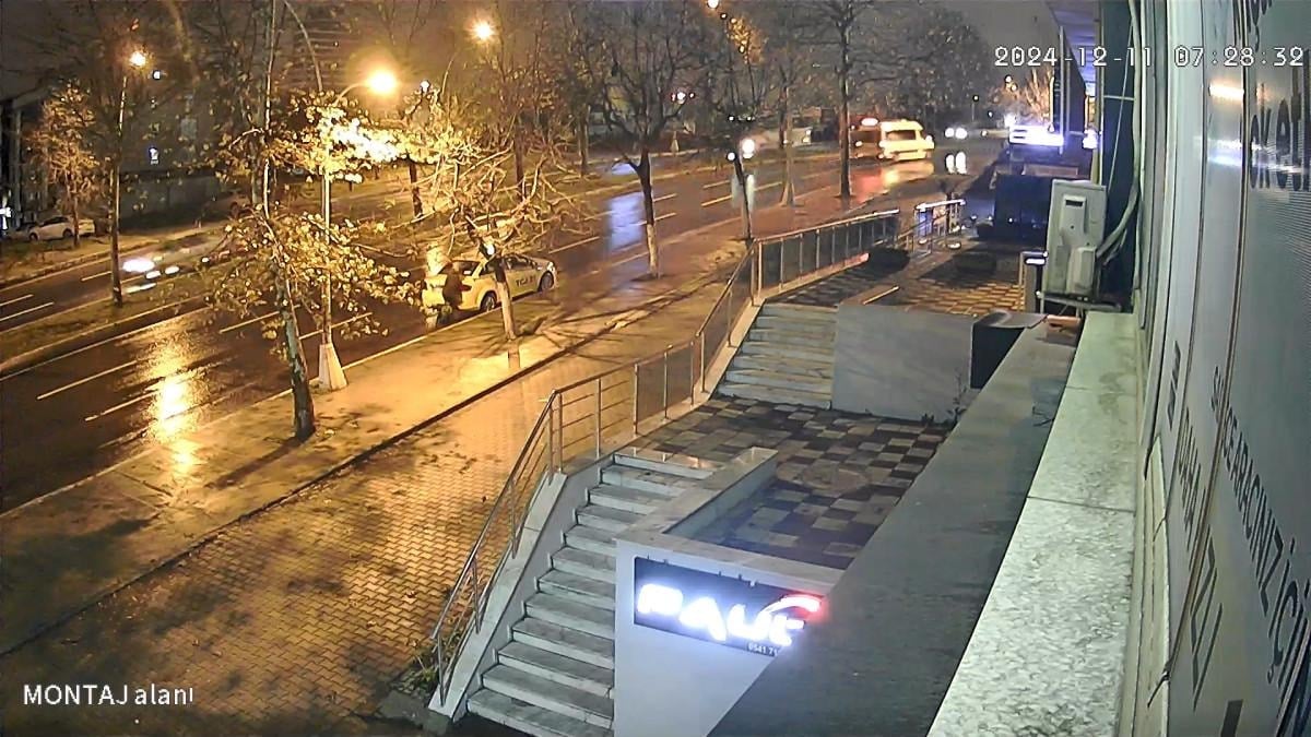 Görüntülerde, taksinin geri geri gittiği ve Ömer Peker'in durdurmaya çalıştığı görülüyor