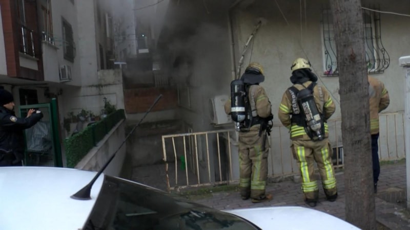 Yangın nedeniyle panik yaşayan diğer ev sahipleri de kendilerini dışarı attılar.