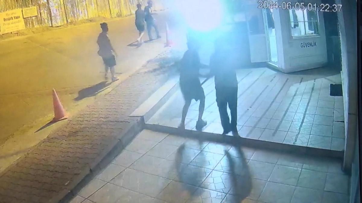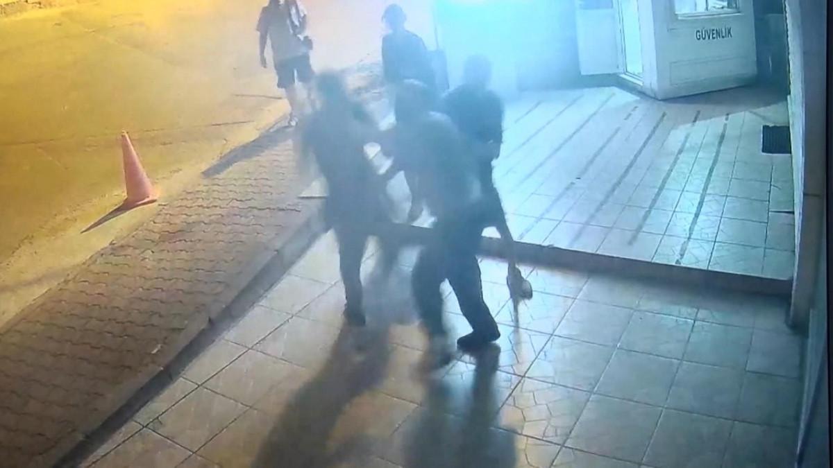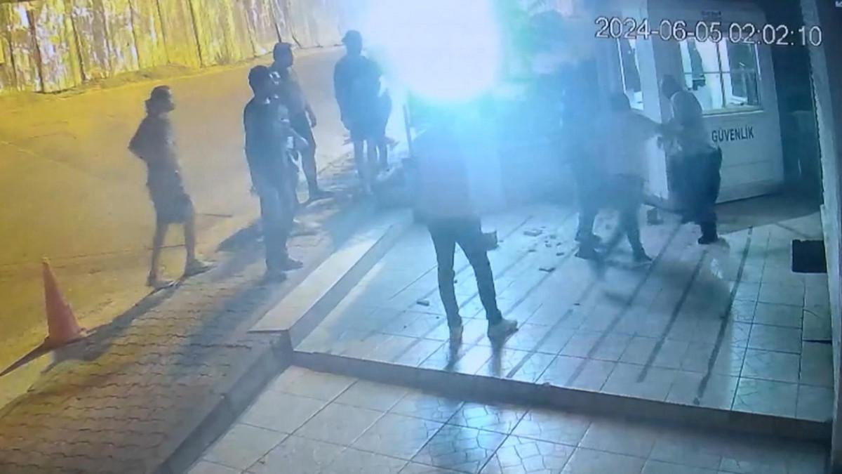 Gece saatlerinde gelen grubun güvenlik görevlisi Salih Karabiber'e saldırdığı anlar, iş yerinin kameralarına saniye saniye yansıdı.