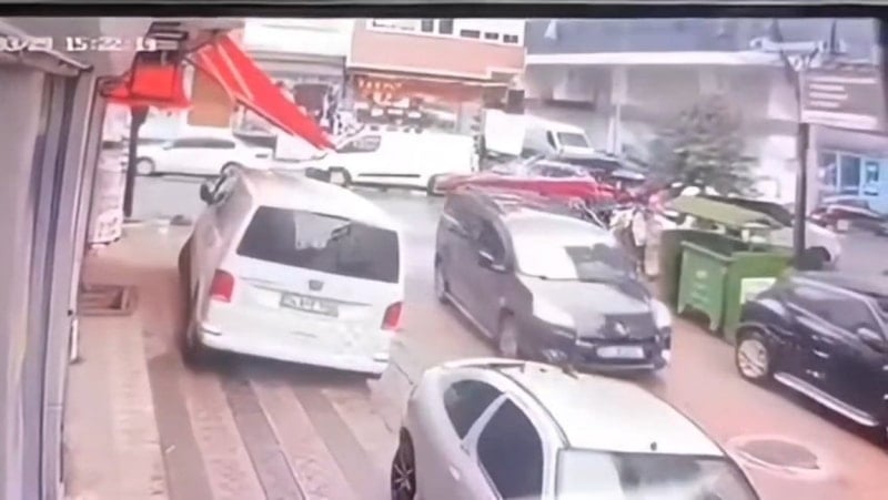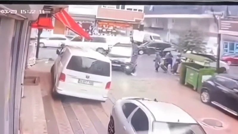 Kaza sonrası sokakta panik yaşanırken, olay anı çevredeki bir iş yerinin güvenlik kamerasına yansıdı.