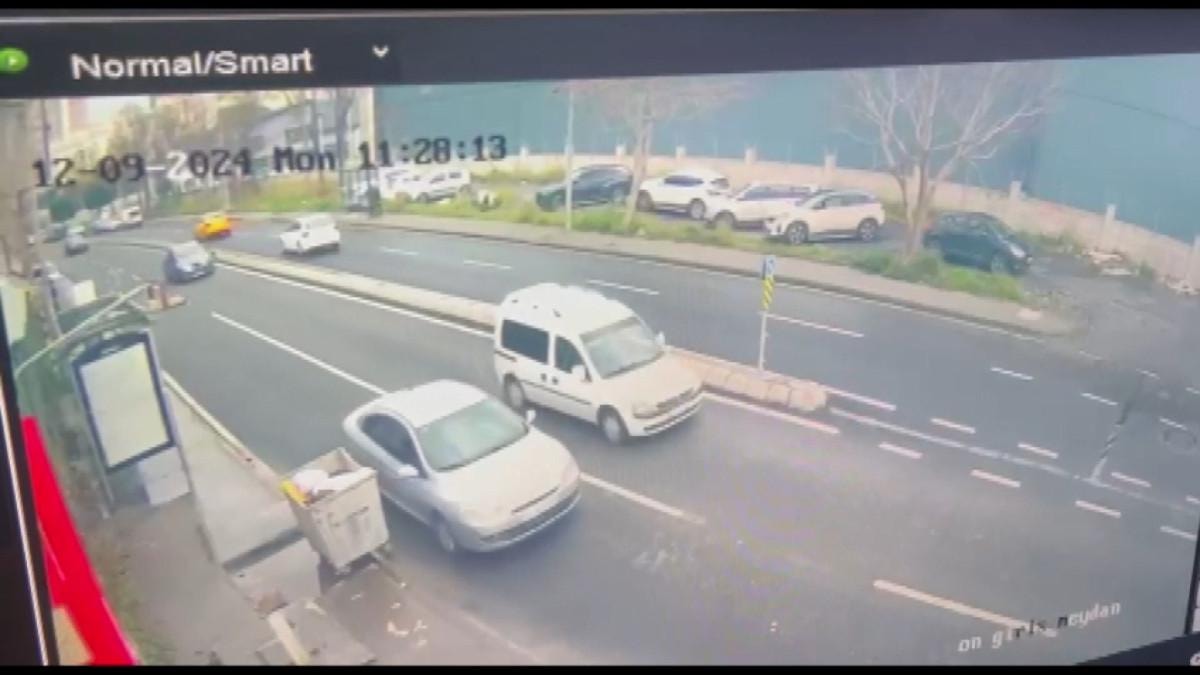 Kaza anı, bölgedeki bir iş yerinin güvenlik kamerası tarafından kaydedildi.