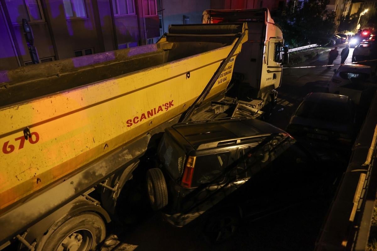 Ataşehir İnönü Mahallesi'nde bir ara sokakta bulunan park halindeki araçlara çarparak sıkışan hafriyat kamyonu sürücüsü Sezgin Açık, polis ekipleri tarafından yakalandı.