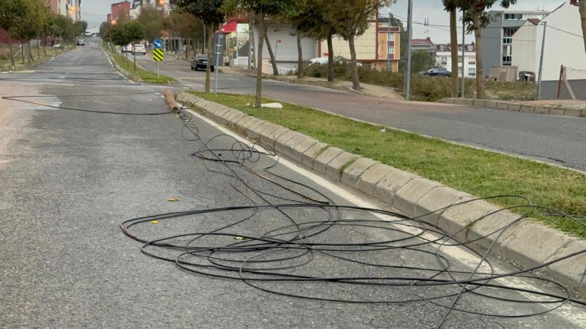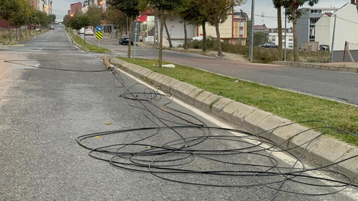 Yaklaşık 3 kilometre sürüklenen direkler, yol kenarında park halindeki araçlara zarar verdi.