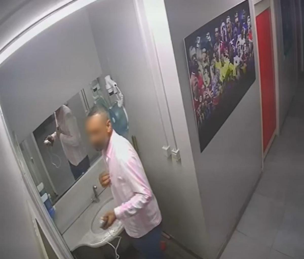 Güvenlik kamerasına yansıyan görüntülerde, şüphelinin spor tesisine girerek bir süre etrafı incelediği, ardından doğrudan telefonun bulunduğu alana yönelip, telefonu alarak dışarı çıktığı görülüyor.