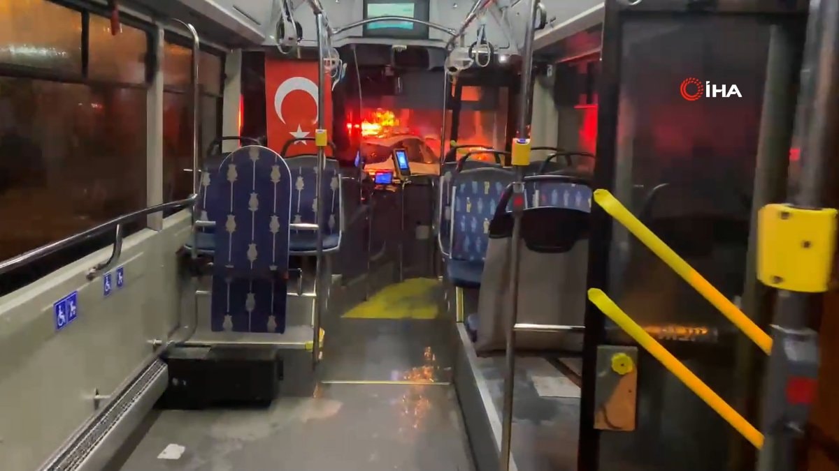 Yükselen dumanları çevredeki diğer otomobil sürücüleri fark ederek, İETT şoförünü korna çalarak uyardı.