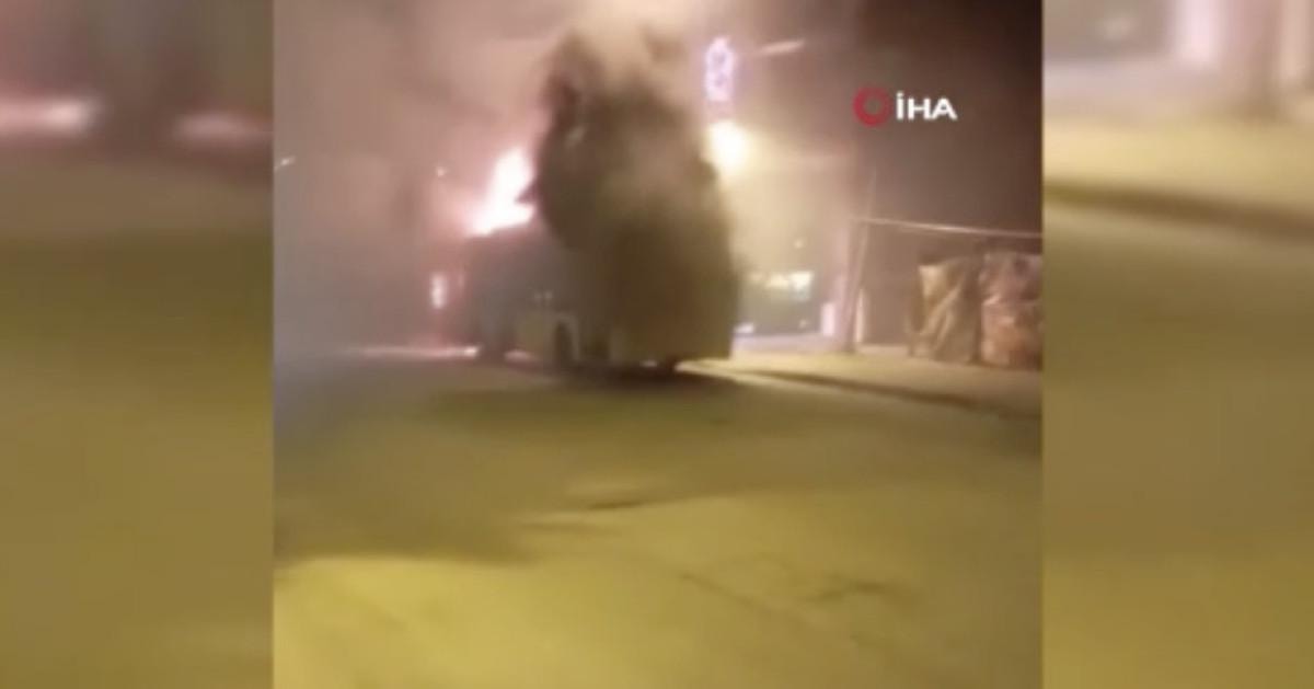 Sebebi bilinmeyen yangın, kısa sürede otobüsü sardı.