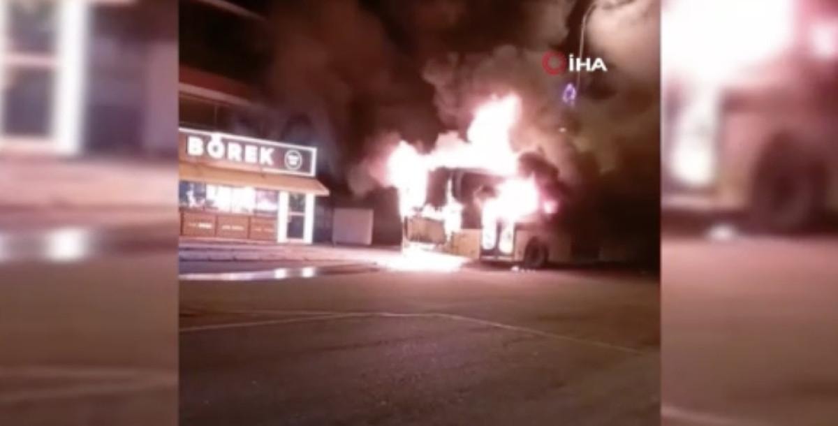 Otobüsü kaplayan yangını olay yerine gelen itfaiye ekipleri söndürürken araç kullanılamaz hale geldi.