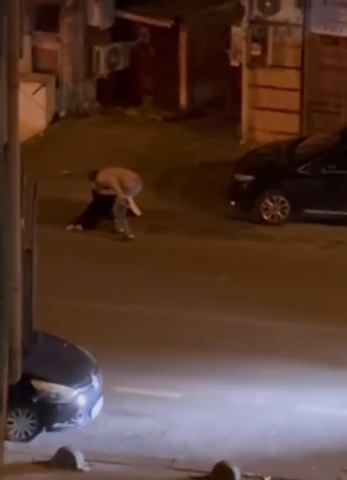 Ardından yerde oturan kadını tokat atarak darbetti.