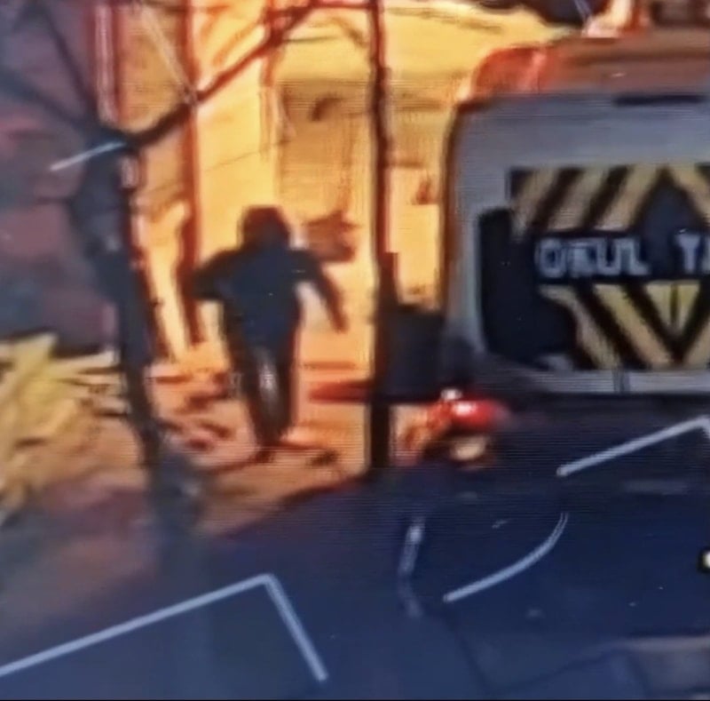 Görüntülerde, kapüşonlu şüphelinin yolda yürüdüğü sırada silahını çıkararak ateş ettiği anlar görülüyor. Saldırgan daha sonra koşarak olay yerinden uzaklaşıyor.