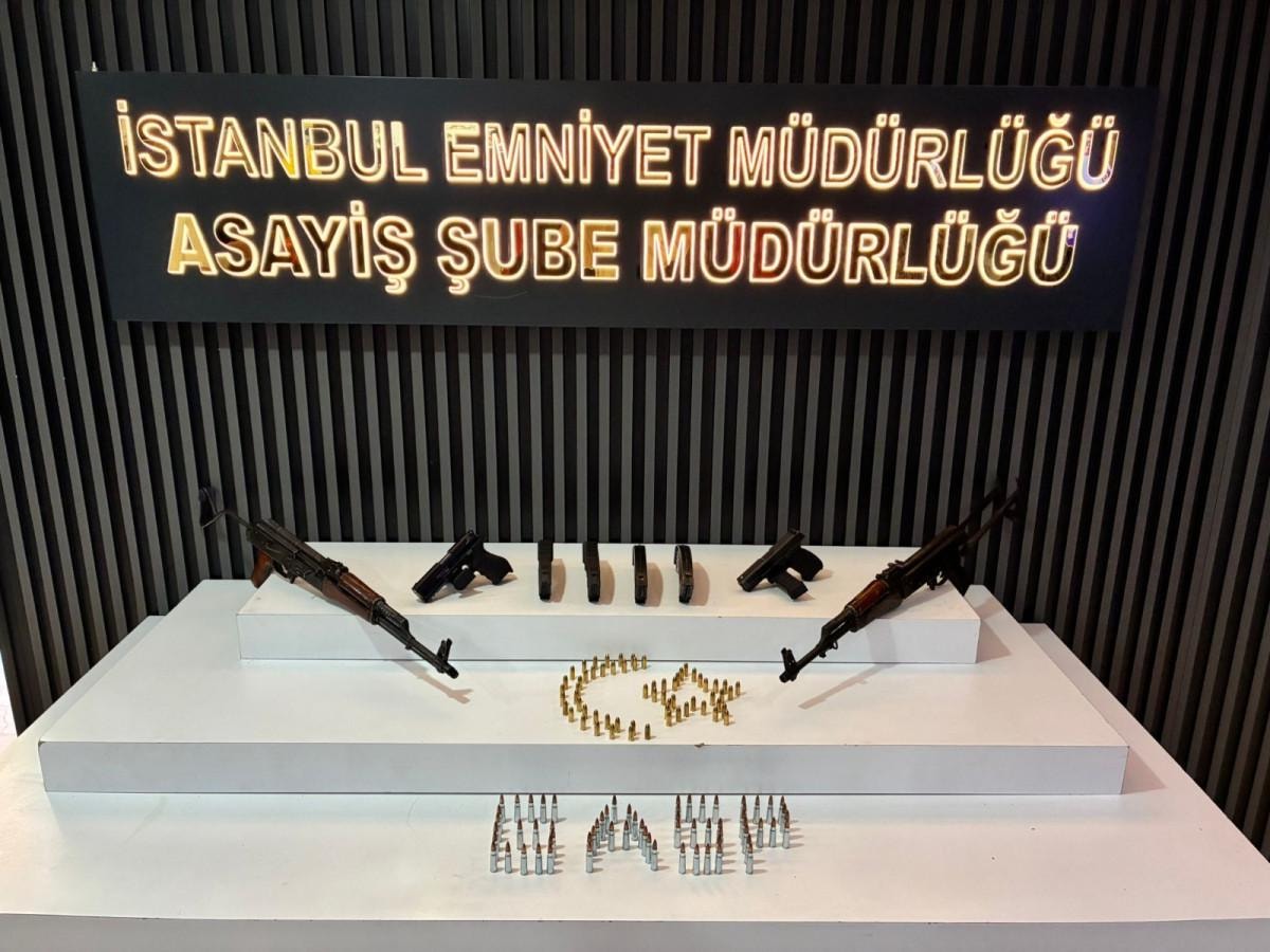 Şüphelinin evinde yapılan aramada, 2 otomatik silah ile 2 ruhsatsız tabanca ve çok sayıda mermi ele geçirildi.