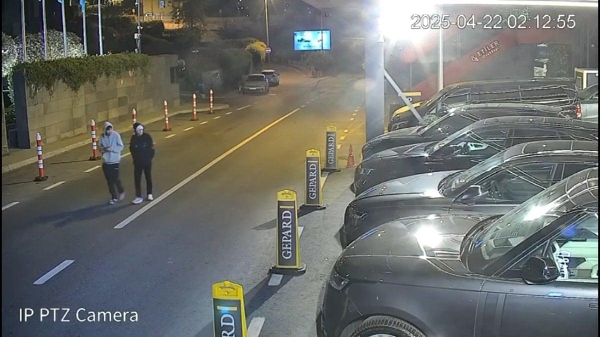 Görüntülerde 2 şüphelinin yürüyerek oto galerinin önüne geldiği, bir süre etrafı incelediği, içlerinden birinin oto galerisine kurşun yağdırdığı görüldü.