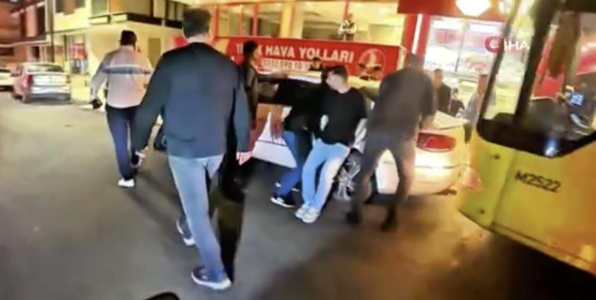 Hatalı park eden aracı hep birlikte kaldırarak kenara çeken vatandaşlar, trafiğin açılmasını sağladı.