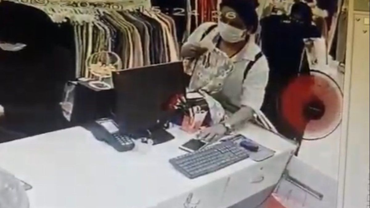 İstanbul Fatih'teki Ali Kuşçu Mahallesi’nde bulunan bir kadın giyim mağazasında çalışan kasiyer, müşterilerin kasaya gelmesi üzerine kasanın başına geçti.