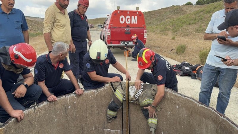 Metro çalışma malzemeleri için kuyuya inen şüpheli, ipin kopması sonrası kuyuda mahsur kalırken, arkadaşları ise panikleyerek şahsı orada bırakıp olay yerinden kaçtı.