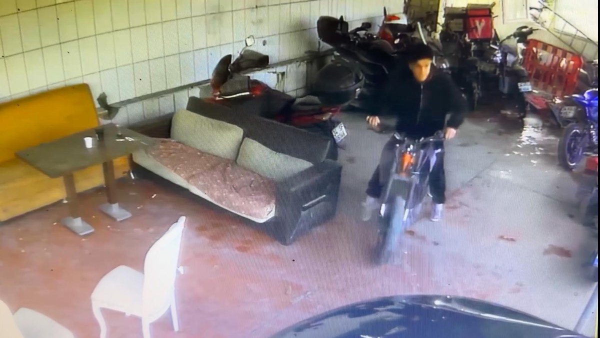 Yaşananlar güvenlik kamerasına saniye saniye yansırken, motosikletin çalınma anını Aydoğan K.'nin arkadaşı da cep telefonu ile kaydetti.