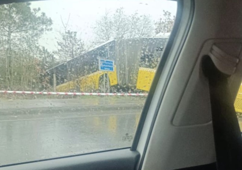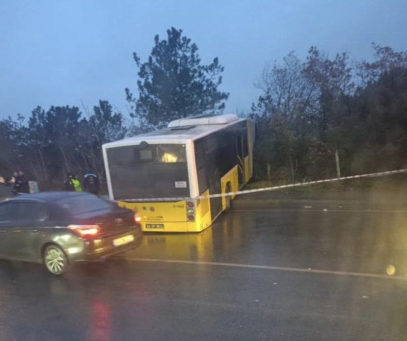 İstanbul Arnavutköy'de İslambey Mahallesi Kıbrıs Caddesi'nde içinde yolcuların bulunduğu MK22 numaralı İETT otobüsü, frenin boşalması sonucu kontrolden çıkarak ormanlık alana uçtu.