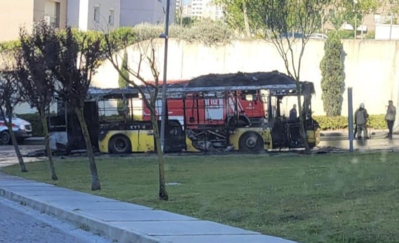 Başakşehir'de seyir halindeki İETT otobüsünde yangın çıktı. Alev alev yanan otobüs kullanılamaz hale gelirken olayda ölen ya da yaralanan olmadı.