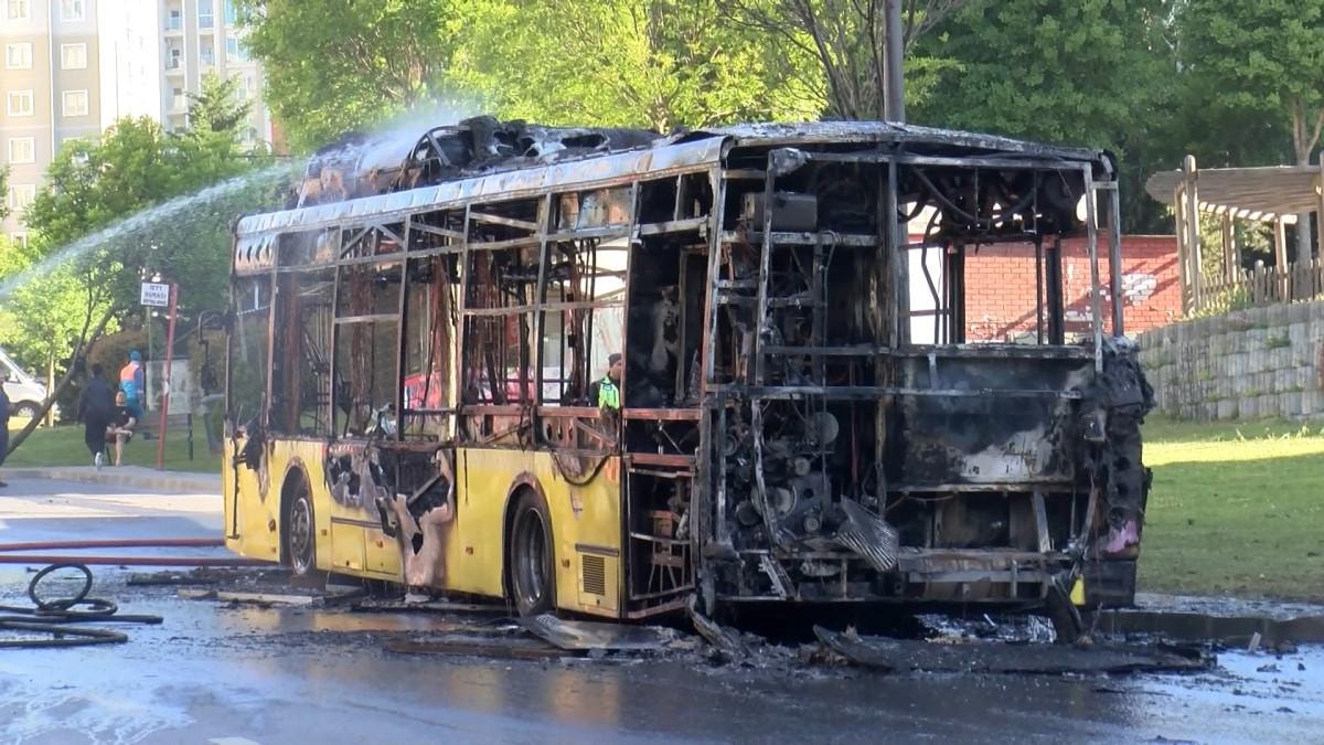 İtfaiyenin müdahalesiyle yangın söndürülürken tamamen yanan otobüs, kullanılamaz hale geldi.