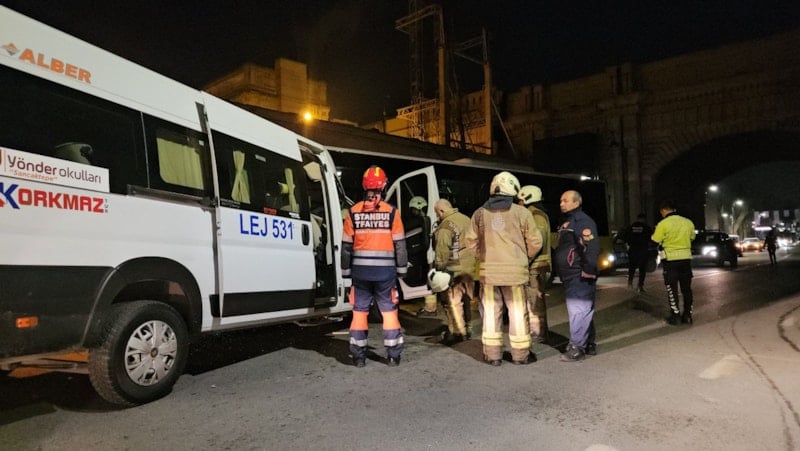 İhbar üzerine olay yerine çok sayıda itfaiye, sağlık ve polis ekibi sevk edildi. Polis ekipleri caddeyi tamamen araç trafiğine kapatırken itfaiye ekipleri, minibüste sıkışan servis şoförünü sıkıştığı yerden çıkardı.