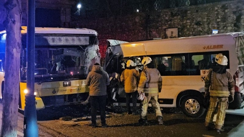 Beşiktaş Çırağan Caddesi üzerinde servis minibüsü, Çırağan Sarayı'na girmek için sola döndüğü esnada seyir halinde olan İETT otobüsüyle kafa kafaya çarpıştı.