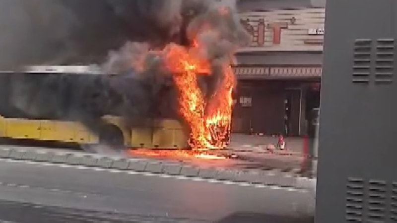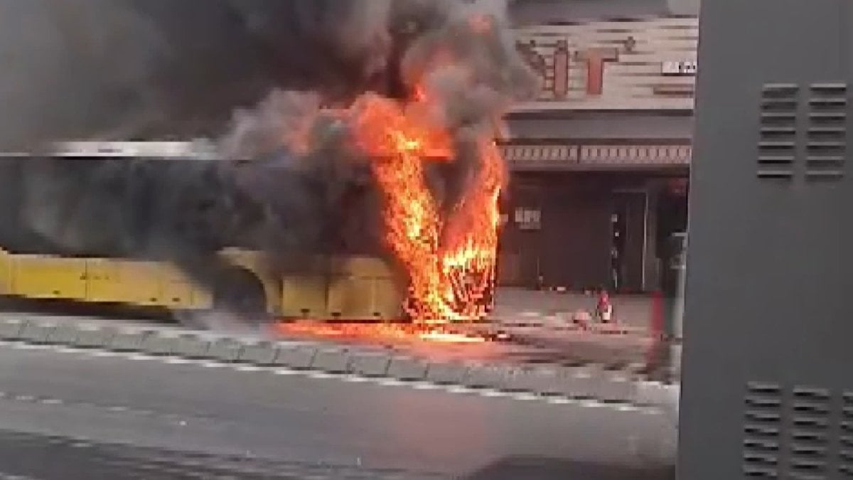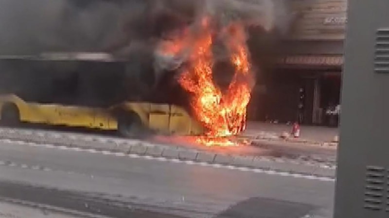 Polis ekipleri, yolu trafiğe kapatırken alevler kısa sürede otobüsün tamamını sardı, oluşan yoğun duman etrafa yayıldı.