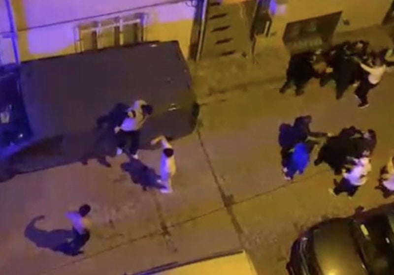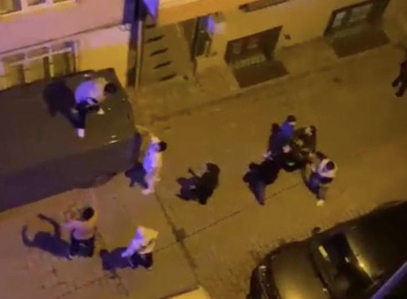 Bir sokakta, iki grup arasında henüz bilinmeyen bir nedenle tartışma çıktı.