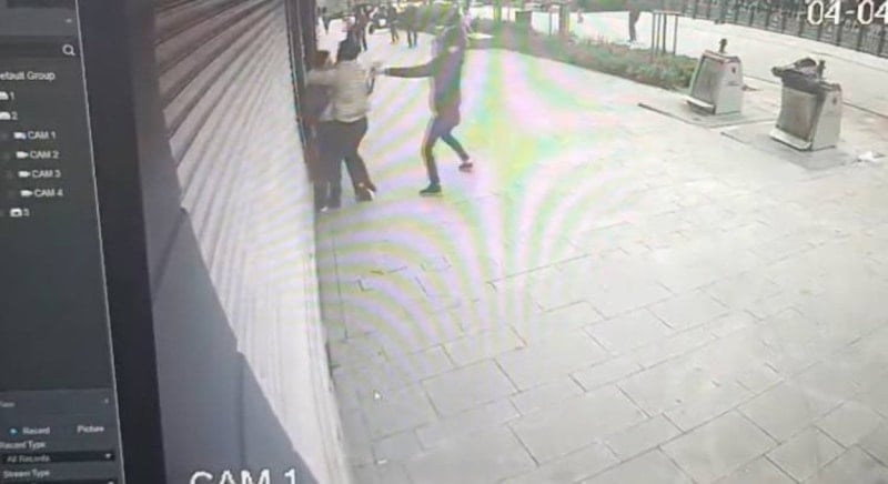 Çevredeki vatandaşların araya girmesiyle kavga son bulurken, o anlar güvenlik kamerasına yansıdı.