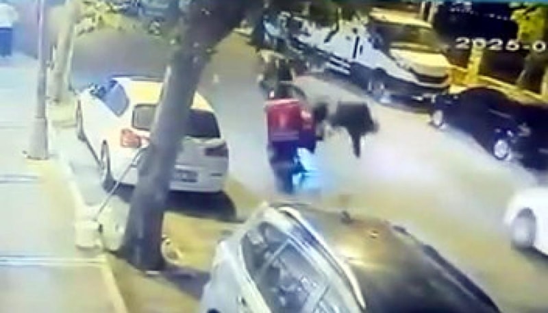 Kaza ise bölgedeki bir iş yerinin güvenlik kamerasına ve bir sürücünün kask kamerasına yansıdı.