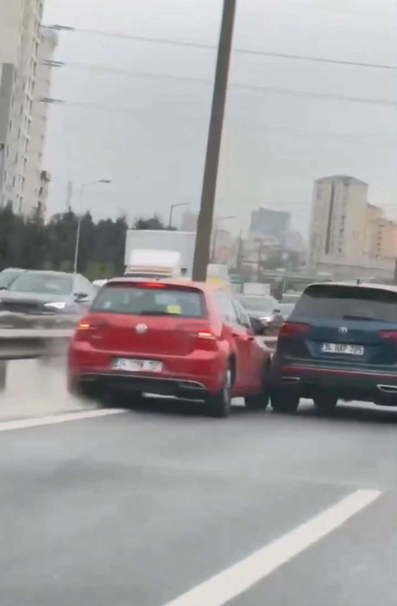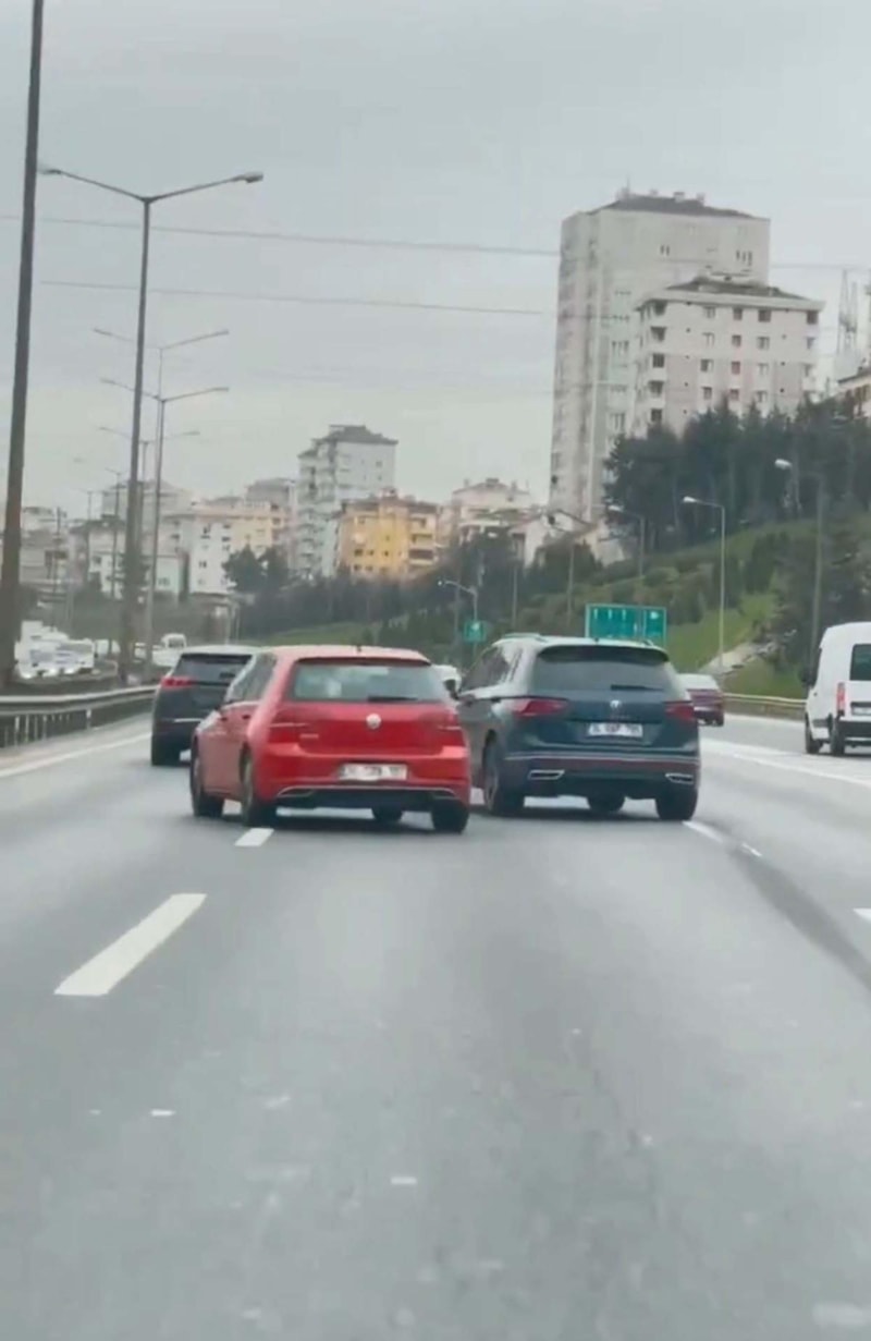 TEM bağlantı yolunda, Kozyatağı'ndan Kavacık istikametine seyir halinde olan otomobil sürücüsü ile cip sürücüsü arasında yol verme inatlaşması yaşandı.